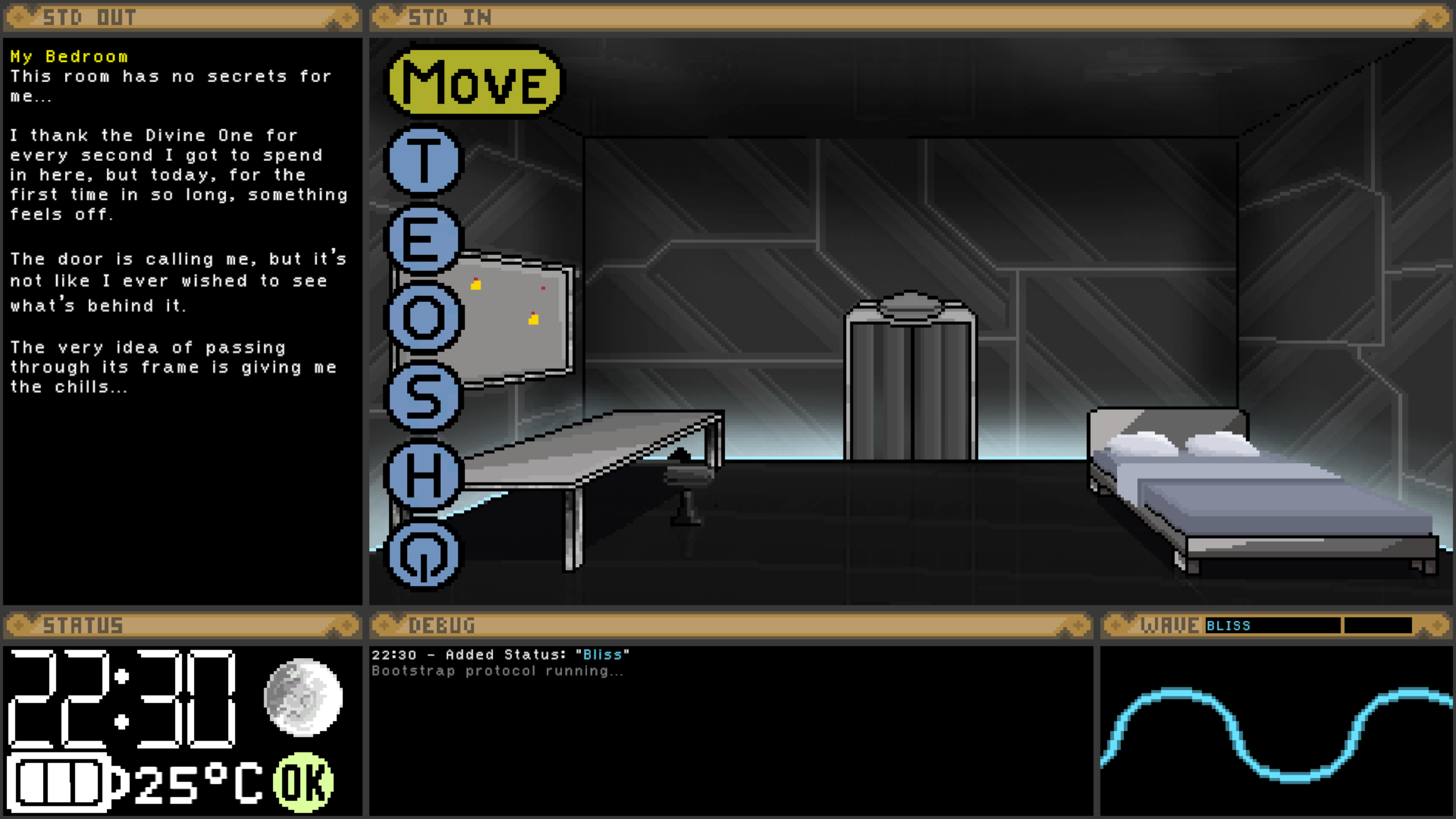 While inside a Graphic Adventure episode, solve puzzles and reach your objective while stuck into dream-like (or sometimes nightmarish) situations, to discover more and more about Megiddo and its origins.